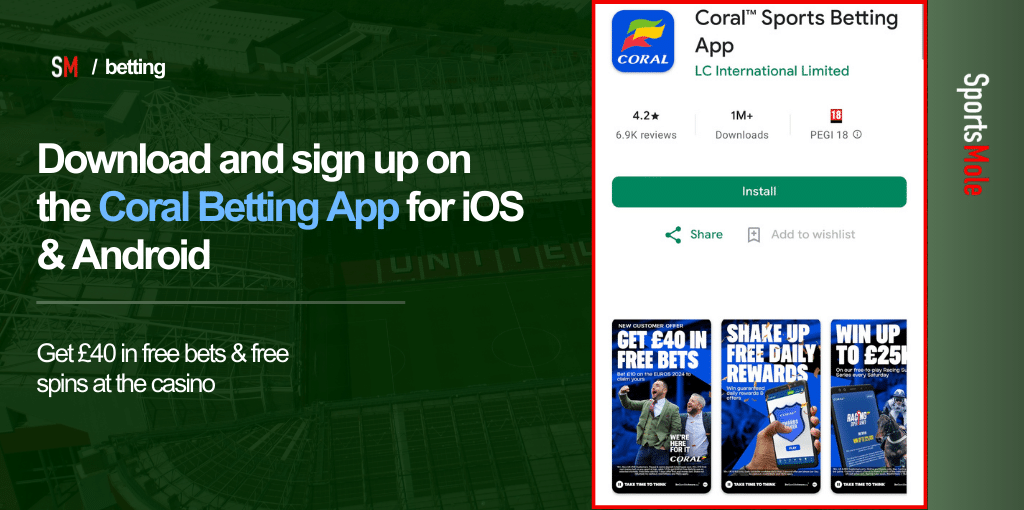 18+ New customers only. Opt in and bet up to £40 (min. £20) via mobile or app on any football (odds 1/1+) within 7 days of registration. Get up to £40 in free bets on selected markets, which expire in 7 days. T&Cs apply. GambleAware.org | Please gamble responsibly