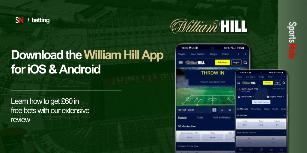 18+. Play Safe. Online only. For new UK register customers using promo code G40. Deposit & place £10 cash single bet (min odds 1/2 on sportsbook (excl. Virtuals). Get £40 in free bets (4x £10), valid for sportsbook (excl. Virtuals), 7 days expiry, must use in full (£10 each). Not valid with deposits via PayPal, Neosurf, Paysafe, Apple Pay, NETELLER, Skrill, ecoPayz, Kalibra/Postpay or WH PLUS Card. One per customer. Full T&Cs apply. www.begamble.aware.org #ad