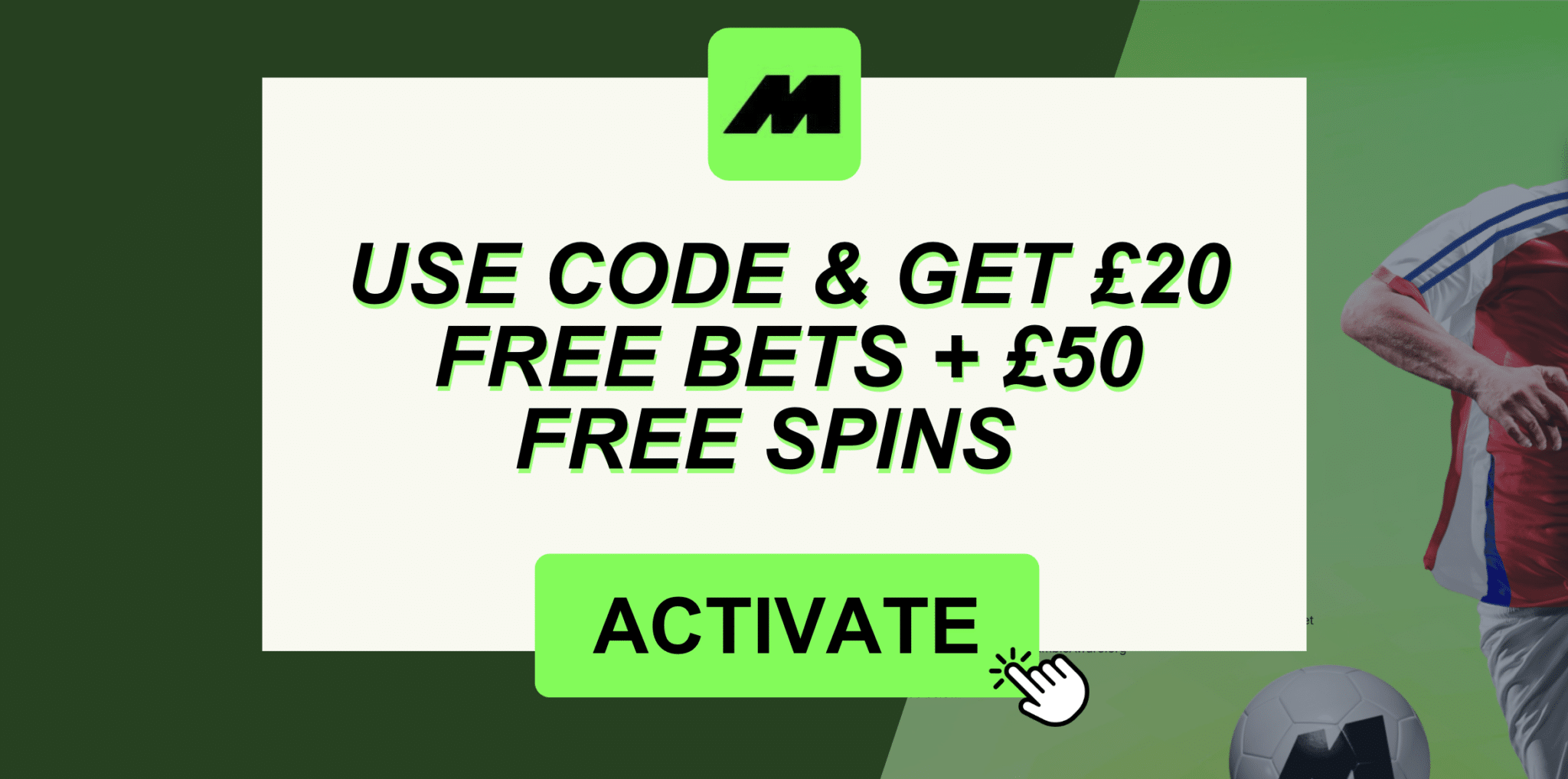 New customers only. Deposit £10+ and place first bet £10+ at Evens (2.0)+ on Sports within 7 days to get 3 x £10 in Sports Free Bets & 2 x £10 in Acca Free Bets within 10 hours of settlement. 7-day expiry. Eligibility & payment exclusions apply. Full T&Cs apply.