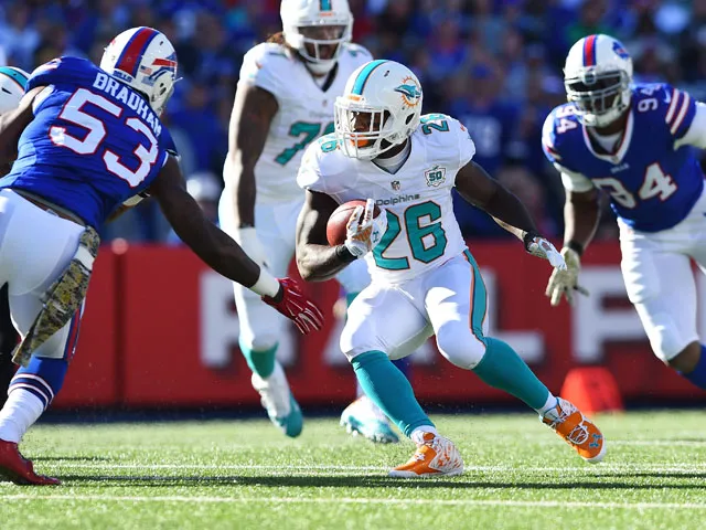 Lamar Miller brought the Dolphins back into the game when he finished a solid drive from his side's offense by plowing into the endzone on the goalline.
