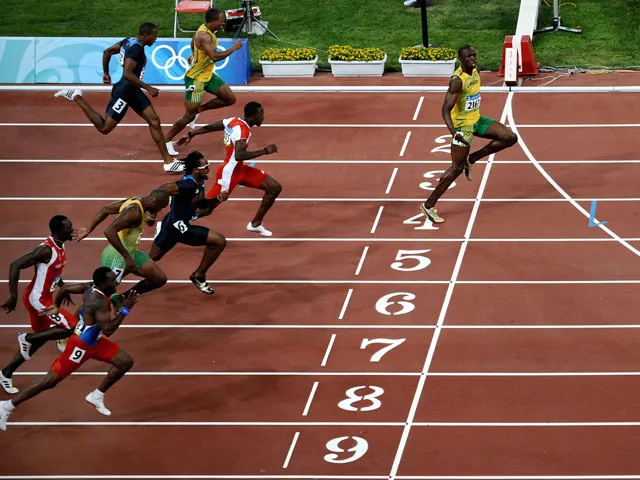 Historically, the winning time for the main Olympic event has been affected largely by the headwind. However, on August 16, 2008, Bolt destroyed an incredibly fast field without a headwind to help him to smash his own world record by 0.03s, in a time of 9.69s.