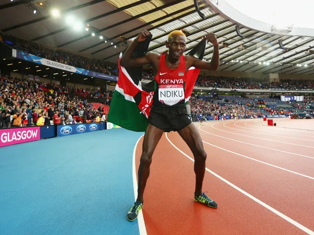 Caleb Ndiku beat compatriot Isiah Koech in this evening's 5000m race at Hampden Park to win Kenya's second gold medal of the Commonwealth Games.