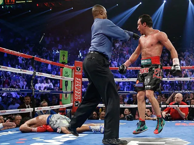 With Pacquiao starting to gain the upper hand in round six, Marquez looked like he could go down again, before recovering to knock Pacquiao out with 2.59s on the clock.
