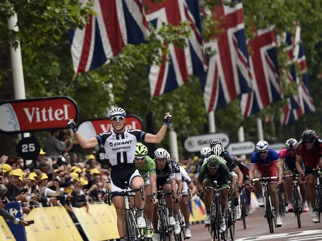 In the last of three stages in England, Giant-Shimano rider Kittel was too strong for Peter Sagan and Mark Renshaw down The Mall in the centre of London.