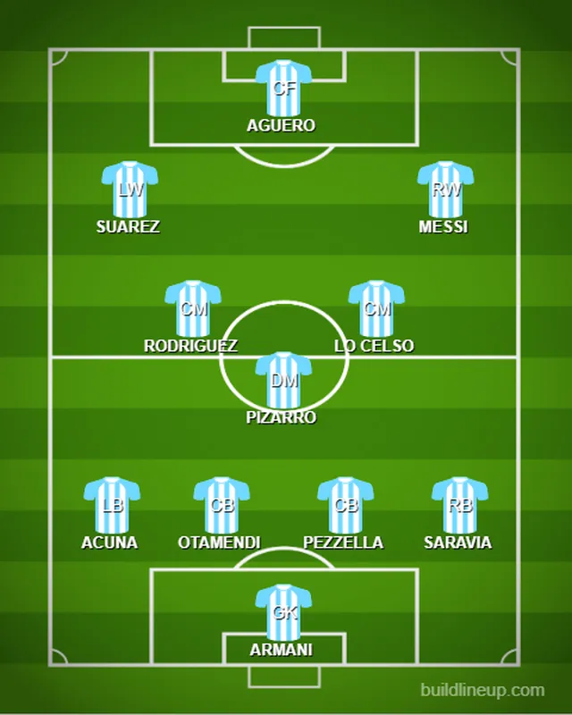 Guido Pizarro and Guido Rodriguez should win their third caps in the centre of midfield, but Giovani Lo Celso appears set to get the nod over Angel Di Maria.