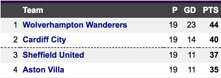Only two points separate the Blues from the bottom three, but at the other end of the spectrum are Wolves, who have won a league-high 14 games already this term to sit top of the table, four points clear of Cardiff City and, perhaps even more importantly, seven above third-placed Sheffield United.