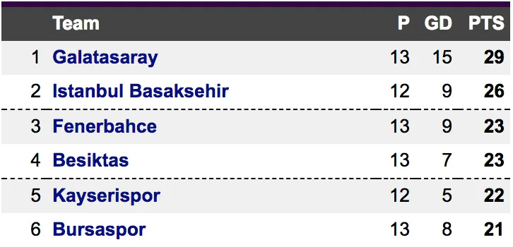 The champions find themselves playing catch-up to their Istanbul neighbours so far this season, though, with Galatasaray currently sitting top of the table and six points clear of Besiktas.