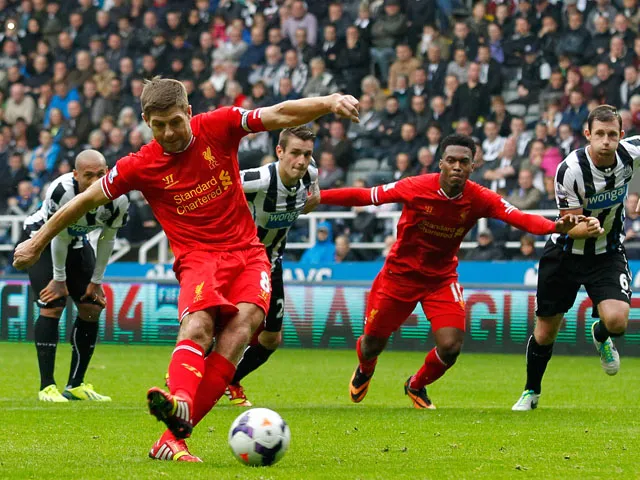 Steven Gerrard's first-half penalty in Liverpool's 2-2 draw at Newcastle provided the England skipper with his 100th Premier League goal.