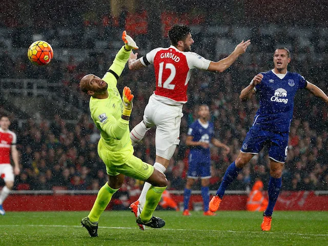 Giroud opened the scoring for the Gunners late in the opening period, rising between Phil Jagielka and John Stones to glance a header over Tim Howard and into the Toffees' net.