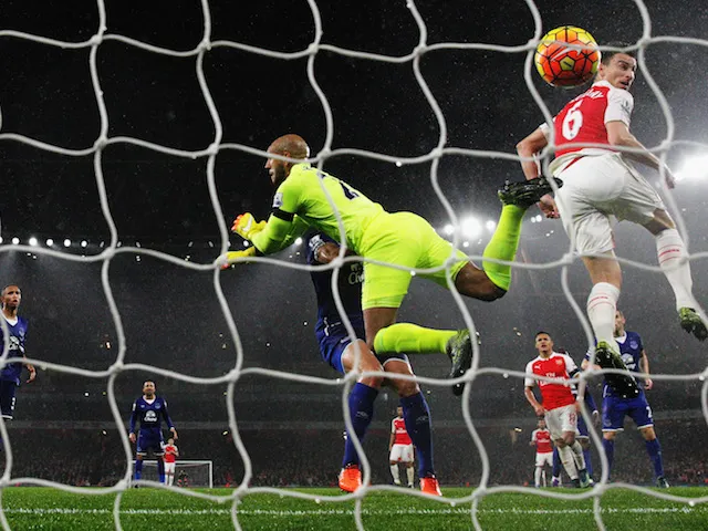 Substitute Mathieu Flamini had a late chance to seal the points but headed straight at Howard, before Gerard Deulofeu spurned Everton's final chance as he took one touch too many in the Arsenal penalty area to allow Cech to smother the ball.