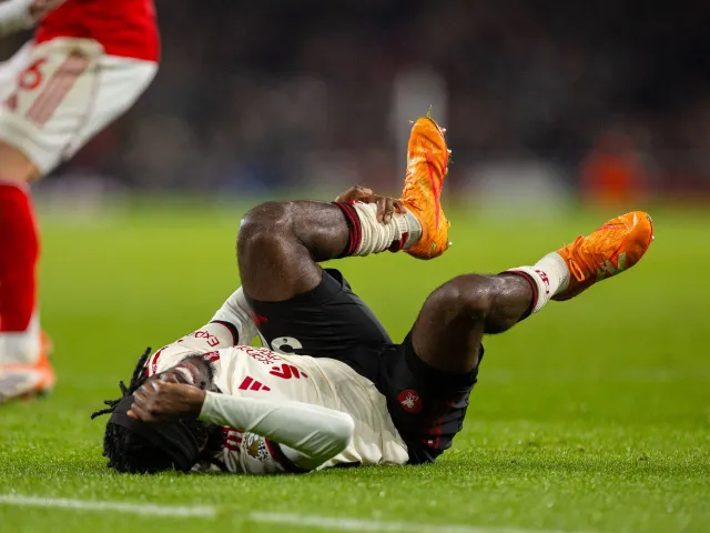 Jeremie Frimpong went down injured in Arsenal's box later in the first half, with Piero Hincapie appearing to clip the back of his heel, though no penalty was awarded.