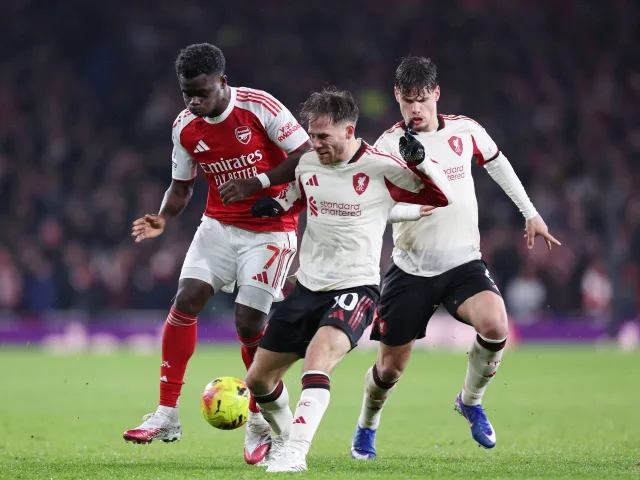 The first moment of note came near the half-hour mark, when William Saliba's backpass hit an onrushing David Raya, with Conor Bradley's lob striking the crossbar.
