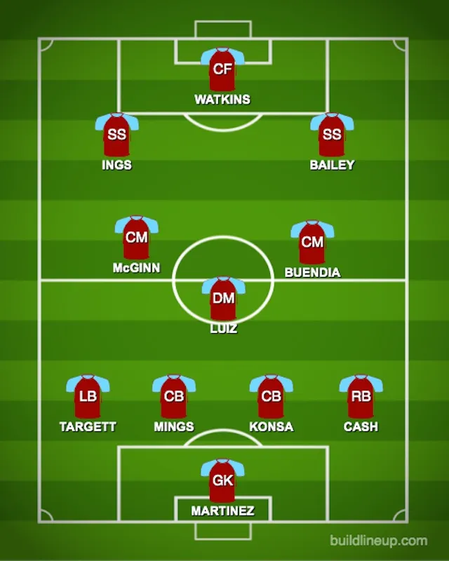 Midfielders: Emiliano Buendia, Douglas Luiz, John McGinn, Conor Hourihane, Bertrand Traore, Marvelous Nakamba, Anwar El Ghazi, Morgan Sanson, Jacob Ramsey, Harrison Sohna, Jaden Philogene-Bidace, Ben Chrisene, Carney Chukwuemeka, Kaine Hayden, Lamar Bogarde