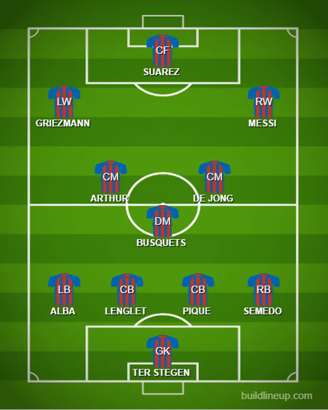 Despite Ousmane Dembele now being available after injury, Lionel Messi, Antoine Griezmann and Suarez are expected to feature in the final third.