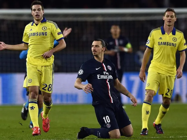 8.46pmUPDATE: Zlatan Ibrahimovic has been sent off, but it's currently goalless between Chelsea and PSG at Stamford Bridge. If it remains 1-1 on aggregate, Chelsea will be going through.