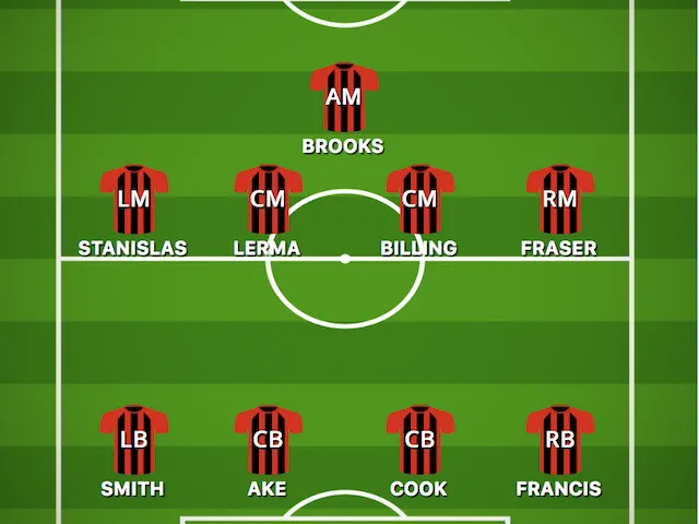 Elsewhere, Philip Billing and Jefferson Lerma could start in the middle of the park with Lewis Cook potentially dropping to the bench.