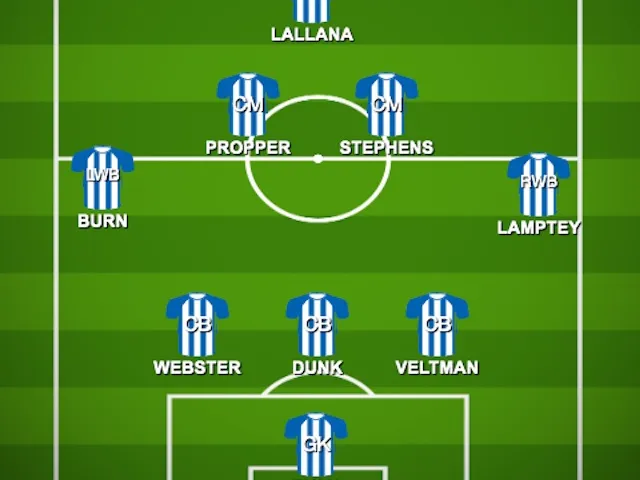 1. Mathew Ryan (GK) 2. Tariq Lamptey (DF) 3. Ben White (DF) 4. Adam Webster (DF) 5. Lewis Dunk (DF) 6. Dale Stephens (MF) 7. Aaron Connolly (FW) 8. Yves Bissouma (MF) 9. Neal Maupay (FW) 10. Alexis Mac Allister (MF) 11. Leandro Trossard (MF) 13. Pascal Gross (MF) 14. Adam Lallana (MF) 15. Alireza Jahanbakhsh (MF) 17. Steven Alzate (MF) 19. Jose Izquierdo (MF) 20. Solly March (MF) 23. Jason Steele (GK) 24. Davy Propper (MF) 28. Tudor Baluta (DF) 30. Bernardo (DF) 33. Dan Burn (DF) 34. Joel Veltman (DF) - Christian Walton (GK) - Jayson Molumby (MF) - Florin Andone (FW)