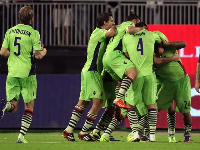 Soon after the visitors doubled their advantage through Panagiotis Kone, as he collected Michele Pazienza's pass before measuring into the far corner.