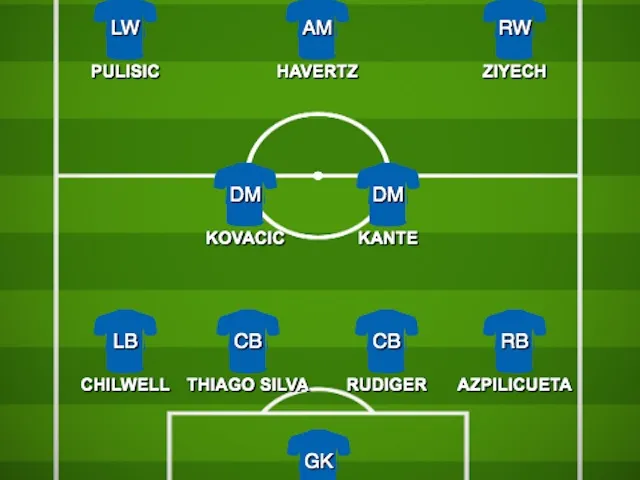 1. Kepa Arrizabalaga (GK) 2. Antonio Rudiger (DF) 3. Marcos Alonso (DF) 4. Andreas Christensen (DF) 5. Jorginho (MF) 6. Thiago Silva (DF) 7. N'Golo Kante (MF) 8. Ross Barkley (MF) 9. Tammy Abraham (FW) 10. Christian Pulisic (MF) 11. Timo Werner (FW) 12. Ruben Loftus-Cheek (MF) 13. Willy Caballero (GK) 14. Fikayo Tomori (DF) 15. Kurt Zouma (DF) 17. Mateo Kovacic (MF) 18. Olivier Giroud (FW) 19. Mason Mount (MF) 20. Callum Hudson-Odoi (MF) 21. Ben Chilwell (DF) 22. Hakim Ziyech (MF) 23. Billy Gilmour (MF) 24. Reece James (DF) 28. Cesar Azpilicueta (DF) 29. Kai Havertz (MF) 33. Emerson Palmieri (DF) - Jake Clarke-Salter - Baba Rahman - Davide Zappacosta - Victor Moses - Tiemoue Bakayoko - Danny Drinkwater - Marco van Ginkel - Lewis Baker - Charly Musonda
