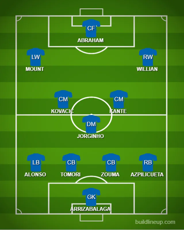 Having been rested on Wednesday night, N'Golo Kante should be available to take his place in midfield alongside Jorginho and Mateo Kovacic, with Willian and Mason Mount getting the nod on the flanks.