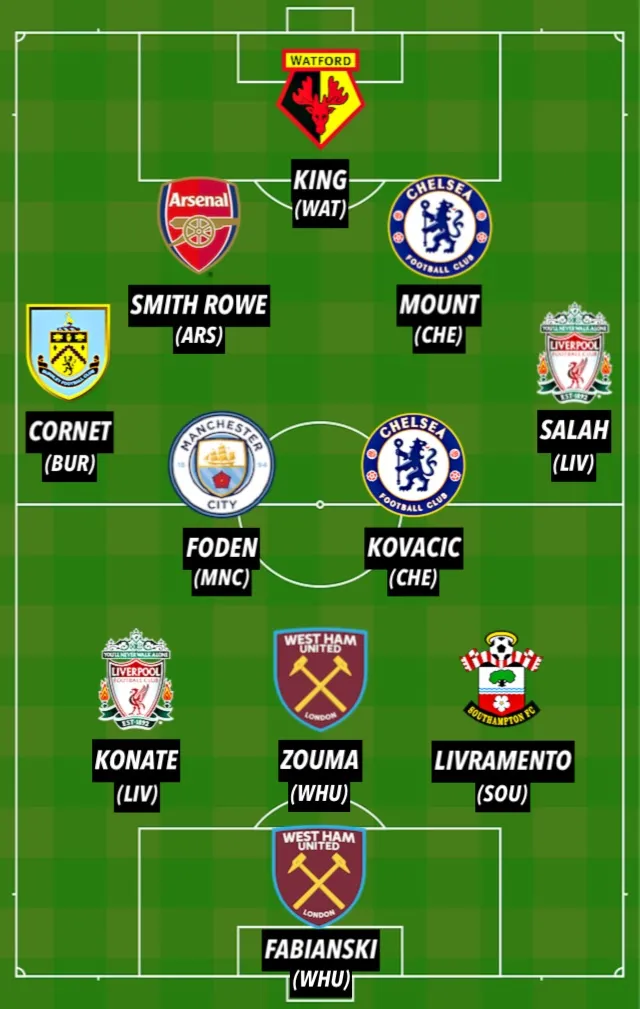 Sports Mole's Premier League Team of the Week (3-4-2-1): Fabianski; Livramento, Zouma, Konate; Salah, Kovacic, Foden, Cornet; Mount, Smith Rowe; King