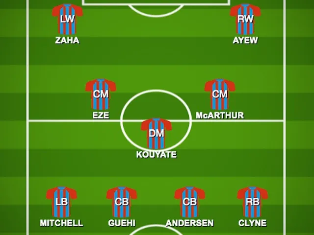 Midfielders: Conor Gallagher, Luka Milivojevic, Michael Olise, Cheikhou Kouyate, James McArthur, Eberechi Eze, Nya Kirby, Jesurun Rak-Sakyi