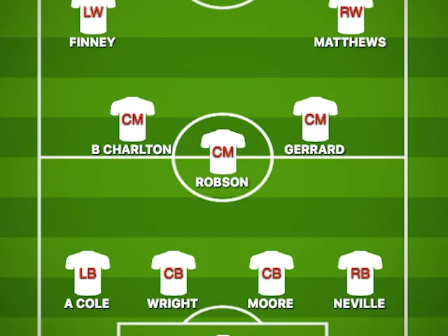 The quality of the two wingers selected forces us to go with a 4-3-3 formation as the likes of David Beckham and John Barnes miss out in the wide positions, which instead go to the legendary duo Stanley Matthews and Tom Finney.