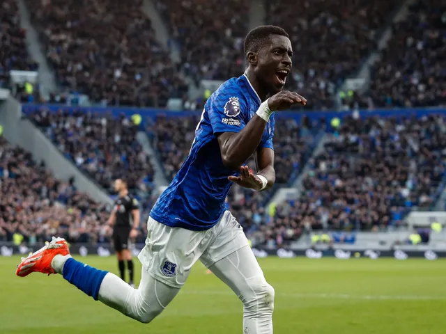 Vitaliy Mykolenko's cross causes carnage in the penalty box, as James Tarkowski's header crashes the bar, Tim Iroegbunam swipes at the follow-up, and eventually Gueye arrives to awkwardly toe-poke the ball home.