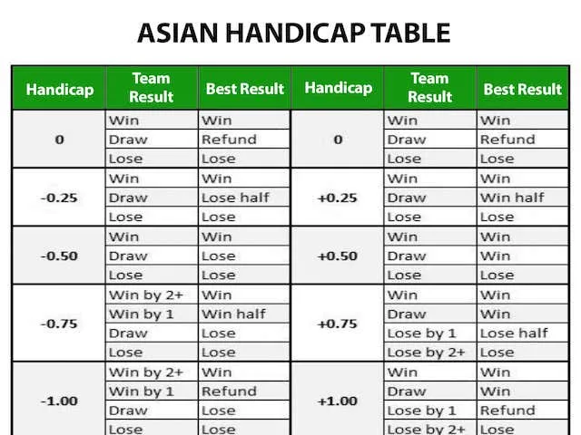 There are several types of Asian Handicaps available in the market. Found below is a table you could also use for reference.