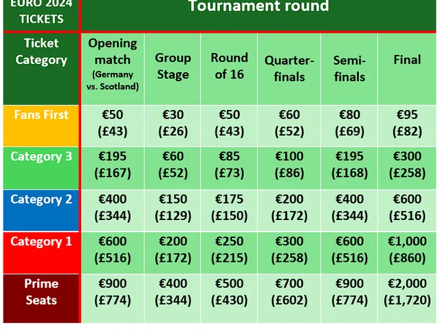 Standard Tickets for Euro 2024 have been split into five different categories for each stadium: