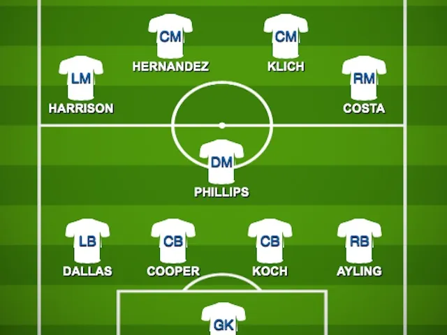 1. Illan Meslier (GK) 2. Luke Ayling (DF) 3. Barry Douglas (DF) 4. Adam Forshaw (MF) 6. Liam Cooper (DF) 7. Ian Poveda (MF) 9. Patrick Bamford (FW) 10. Ezgjan Alioski (DF) 11. Tyler Roberts (FW) 13. Kiko Casilla (GK) 15. Stuart Dallas (DF) 17. Helder Costa (MF) 19. Pablo Hernandez (MF) 21. Pascal Struijk (DF) 22. Jack Harrison (MF) 23. Kalvin Phillips (MF) 24. Leif Davis (DF) 25. Elia Caprile (GK) 30. Joe Gelhardt (FW) 36. Robbie Gotts (MF) 43. Mateusz Klich (MF) 44. Mateusz Bogusz (MF) 46. Jamie Shackleton (MF) 48. Jordan Stevens (MF) 49. Oliver Casey (DF) - Robin Koch (DF) - Rodrigo Moreno (FW)
