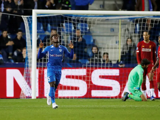Mbwana Samatta scores a goal for Genk which is later disallowed.