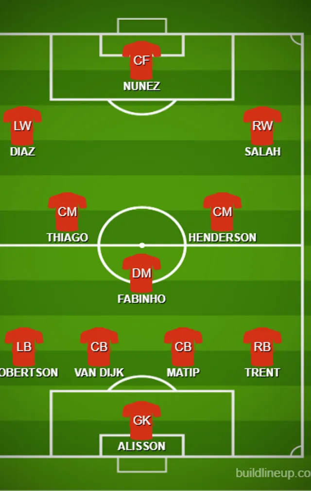 Forwards: Mohamed Salah, Roberto Firmino, Darwin Nunez, Luis Diaz, Diogo Jota