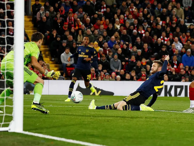 Liverpool's first shot on target did not arrive until the half-hour mark when Rhian Brewster's header was comfortably saved, but by then it was Arsenal who were beginning to look most like scoring and sure enough their third arrived nine minutes before half time.
