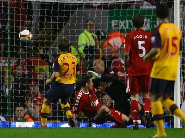 He broke the deadlock in the 36th minute as Samir Nasri robbed Javier Mascherano of possession deep in Liverpool territory. The Frenchman rolled in Cesc Fabregas, who crossed for Arshavin to find the net via the crossbar.