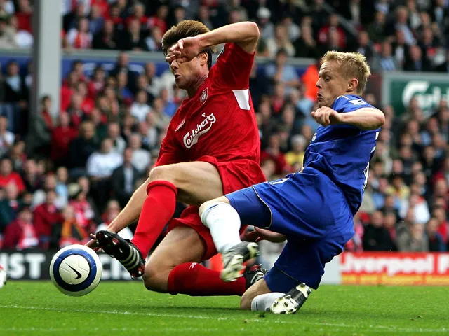 It took Liverpool just nine minutes to get back on level terms, with Steven Gerrard, who had come close to linking up with Chelsea during the summer, netting the goal that saw Anfield erupt. A corner from John Arne Riise was flicked on by Jamie Carragher for Gerrard to drive the ball into the far corner of the net from eight yards. Liverpool had the momentum heading into half time, but just before the break, the visitors netted the goal that would see the game swing in their favour.
