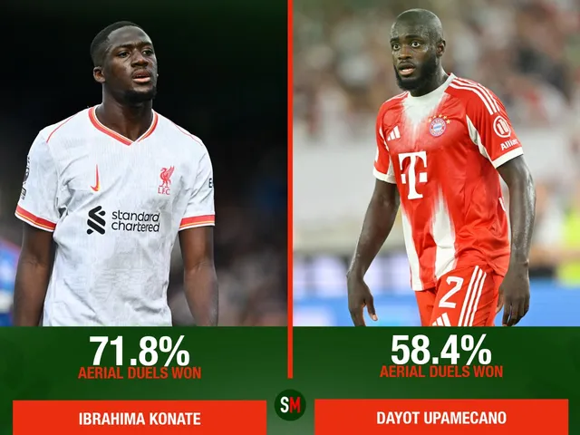 In addition, Konate won 71.8% of his aerial duels in last season's Premier League campaign, compared to Upamecano's less impressive 58.4% in the German top division, although the 6ft 4in Liverpool man does have a three-inch height advantage over the 6ft 1in Bayern defender.