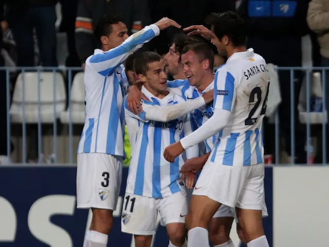 The Belgian side needed a result to earn a place in the Europa League but fell behind after the Malaga skipper opened the scoring with a measured finish in first-half stoppage time.
