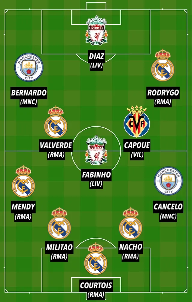 The final spot in the XI is awarded to Rodrygo, who also changed his team's match off the bench, scoring in the 90th and 91st minute to send Real Madrid into extra-time against Man City. The Brazilian might have won it with a late chance, meanwhile, and it was an incredible contribution from the 21-year-old, who used his pace and power to disturb Man City when the English outfit were chasing a leveller.