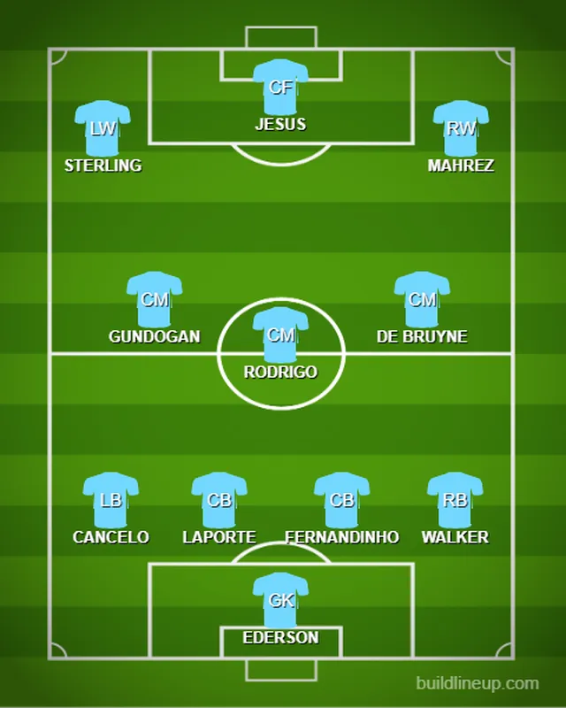 Kevin De Bruyne and Rodrigo seem certain to retain their central-midfield berths, meanwhile, though Ilkay Gundogan's place is under threat as David Silva and Bernardo Silva are pushing for recalls.