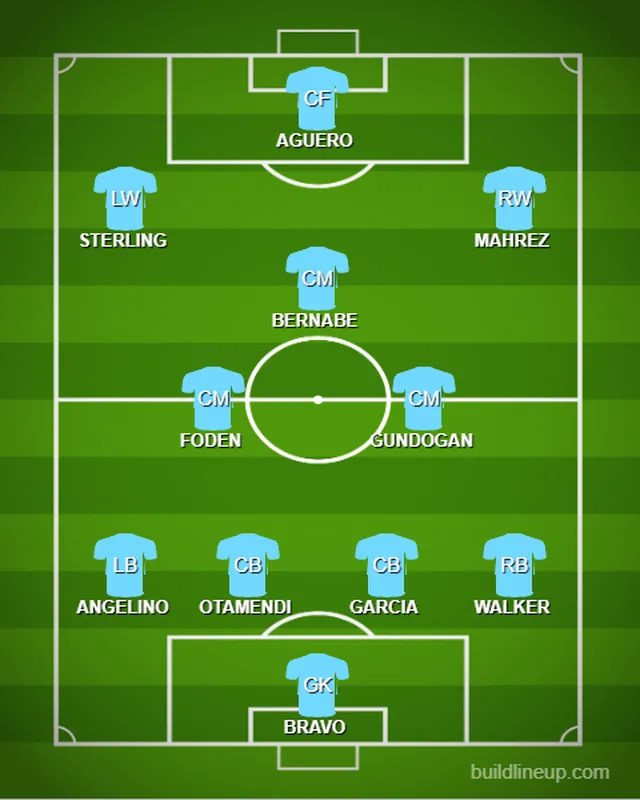 Angelino should feature at left-back, while Eric Garcia is expected to partner Otamendi in the centre of the backline given that Fernandinho is serving a one-match ban.