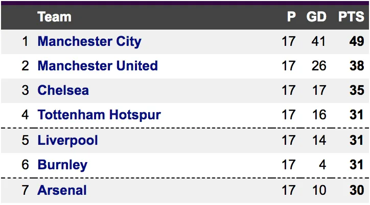 Liverpool, Arsenal and surprise package Burnley are the closest challengers to Mauricio Pochettino's side as things stand, and Spurs will know that one slip-up could easily see them fall from fourth down to seventh, such is the congested nature of that part of the table.