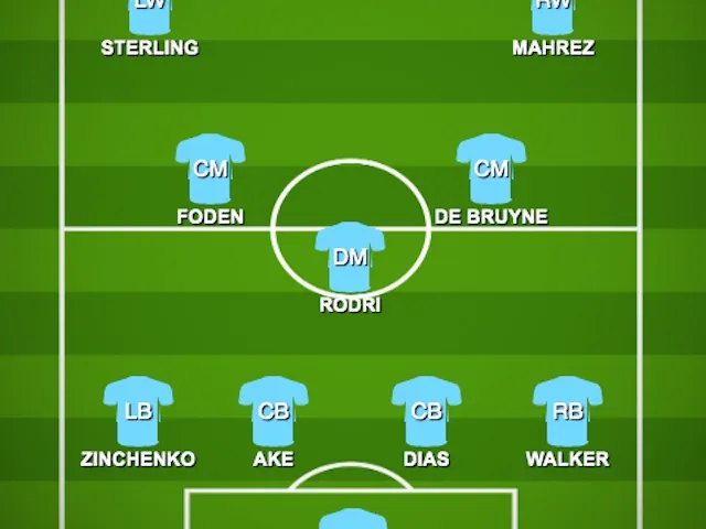 Doubtful: Kevin De Bruyne (thigh), Aymeric Laporte (muscle), Nathan Ake (groin)