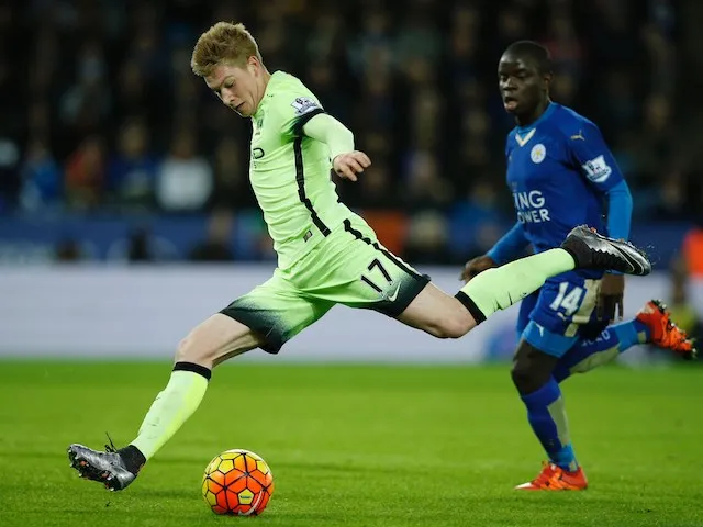 Leicester had the game's first half-chance in the 16th minute when Robert Huth looked to send a header into the top corner after meeting a clipped free kick from Christian Fuchs, but his effort was always over Joe Hart's crossbar, before Kasper Schmeichel denied Kevin De Bruyne with a smart stop down the other end.