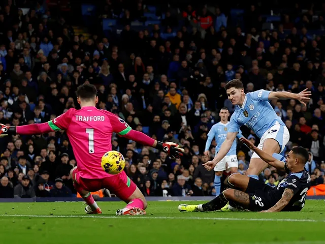 Chants of Haaland's name reverberated around the Etihad when he entered the pitch 20 minutes from time, replacing De Bruyne, but the smile on the Norwegian's face soon turned into a frown when Doku failed to spot his bursting central run towards the box, and instead played a loose ball toward Alvarez.