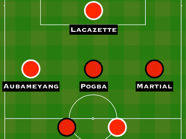 Using Arsenal's 4-2-3-1 system means that Paul Pogba is pushed into a more advanced position than he usually plays, but he has the game-changing ability to prove effective there, particularly considering the dynamic nature of those around him. Mesut Ozil is a doubt for Wednesday's match, while Aaron Ramsey was in contention for a place in this team but is struggling to even get into the Arsenal XI at the moment.