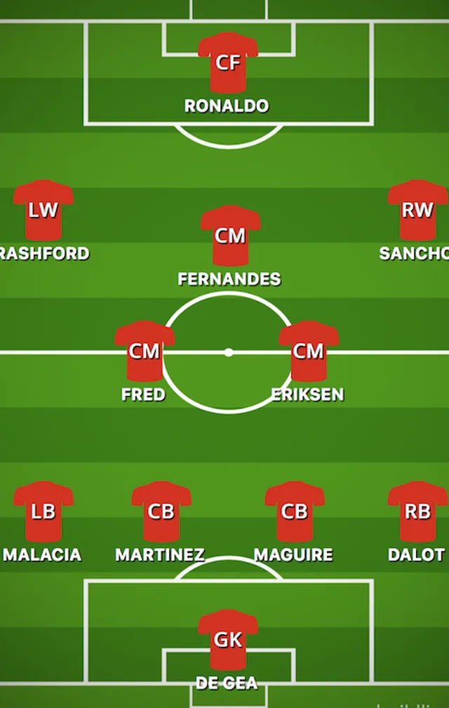Forwards: Cristiano Ronaldo, Anthony Martial, Marcus Rashford, Jadon Sancho, Anthony Elanga, Tahith Chong, Alejandro Garnacho