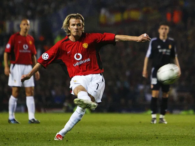 That third goal saw Ferguson introduce Beckham into the action and it took just seven minutes for the England skipper to make an impact. After United were awarded a free kick on the edge of the penalty area, Beckham stepped up to curl the ball over the wall and in off the underside of the crossbar.