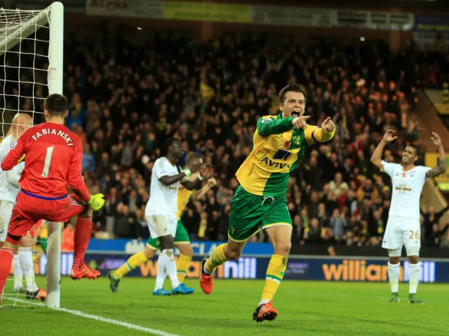 Norwich midfielder Jonny Howson scored for the first time in the Premier League since October 2013.