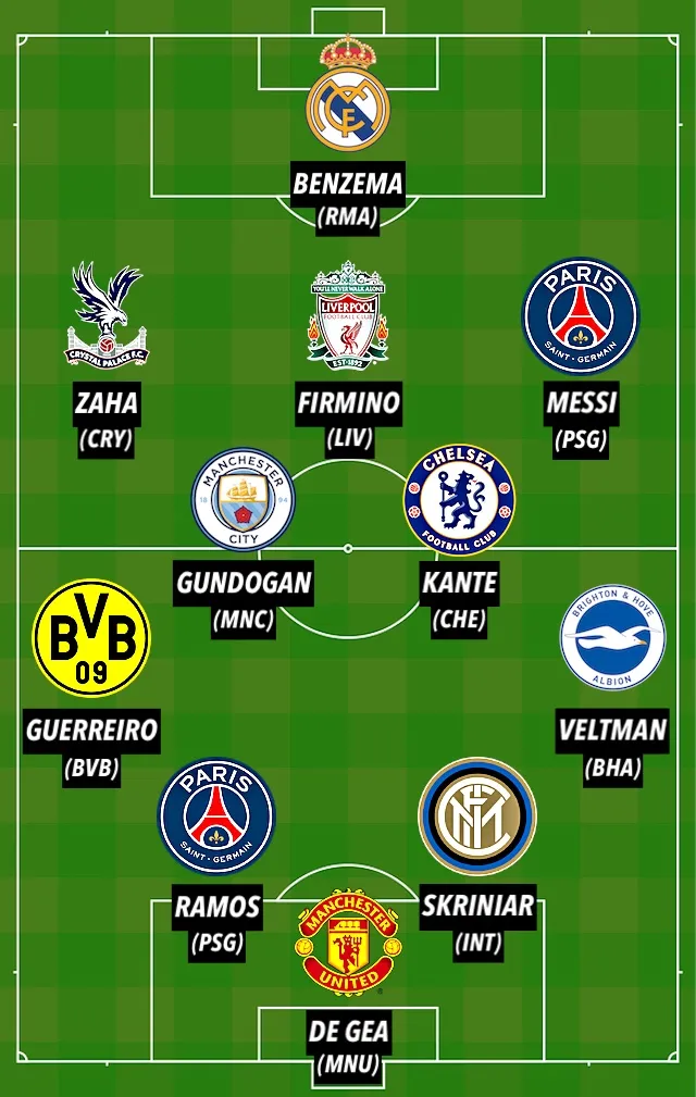 Sports Mole's out-of-contract XI (4-2-3-1): De Gea; Veltman, Skriniar, Ramos, Guerreiro; Kante, Gundogan; Messi, Firmino, Zaha; Benzema